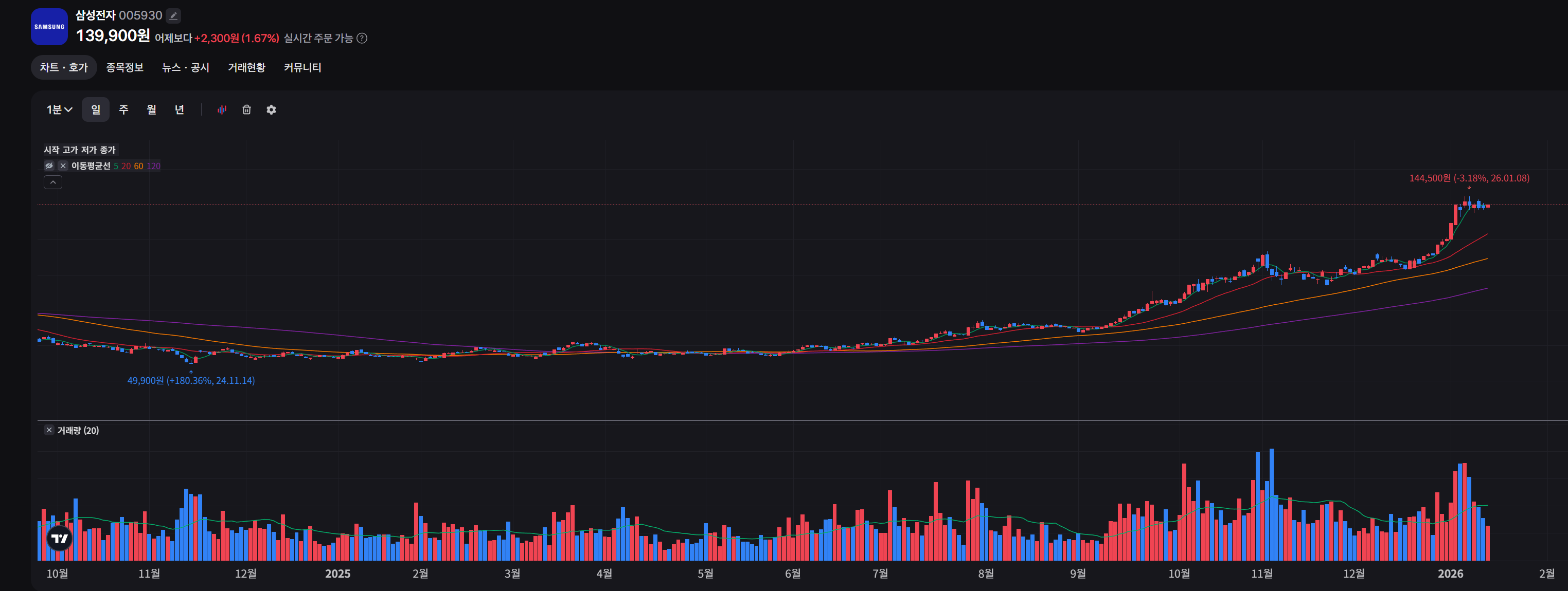 - 120일선(장기): 반기(여섯 달) 동안의 주가 평균의 흐름