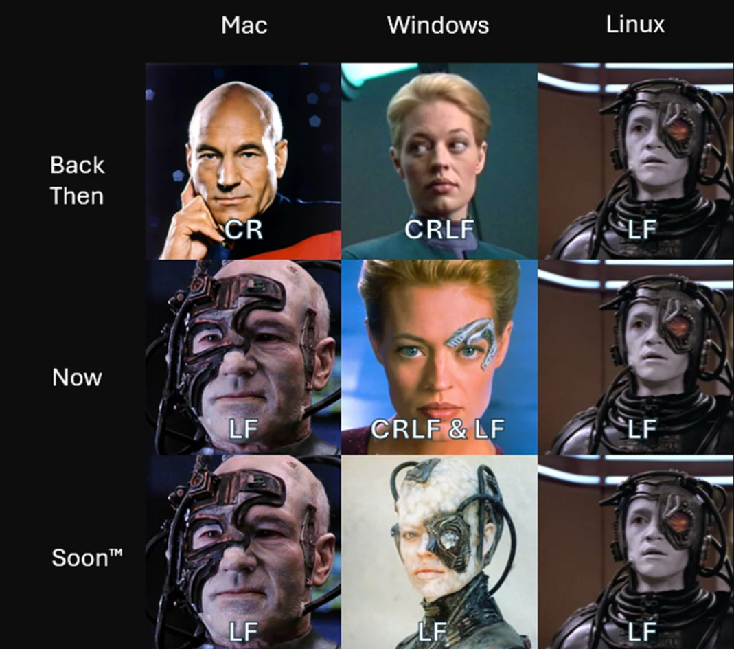 - Windows: CRLF (